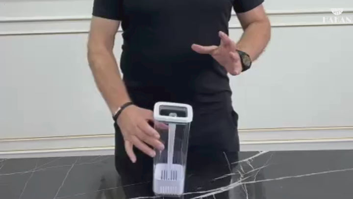 Hakan Herb Keeper for Refrigerator is a practical and durable solution for keeping herbs like parsley, cress, and arugula, cilantro, mint fresh in the refrigerator. The 1.7 L (1.8 qt) Herb Storage Container is made from sturdy plastic. This square-shaped container has a vacuum lid that creates an airtight seal. This helps preserve freshness for longer. Its built-in strainer keeps excess moisture away from the herbs, preventing sogginess and supporting extended shelf life. Hakan Clear Plastic Vegetable and Herb Containers for Fridge is designed specifically for refrigerator use. The transparent body allows you to easily see the contents inside, making it a convenient and long-lasting addition to any kitchen. It is not dishwasher safe or microwave safe.