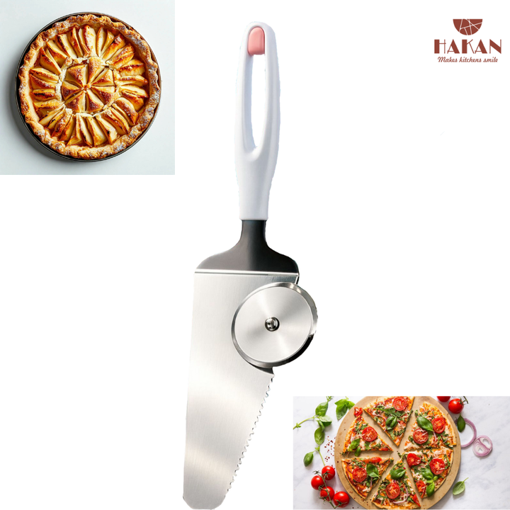 2-in-1 DUAL FUNCTION: The pizza cutter and spatula Combines the roles of a pizza cutter and serving spatula. This kitchen utensil reduces the need for multiple utensils and saving space in your kitchen.